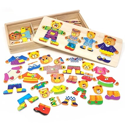 Pamray Rompecabezas De Vestir Juguetes Puzzles Osos Conejos Cambiar La Ropa Diy Para Madera Juego Para Niñas Niños Bebés De Dress Up Toy De 3 Años Y