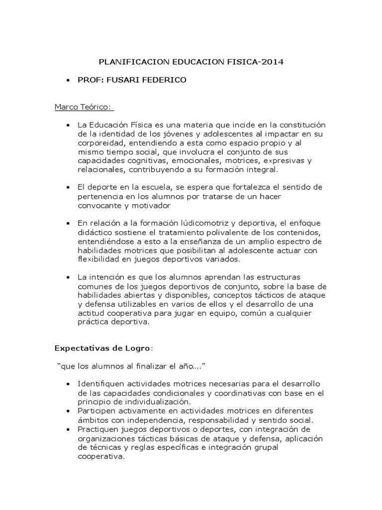 Planificacion Educacion Fisica