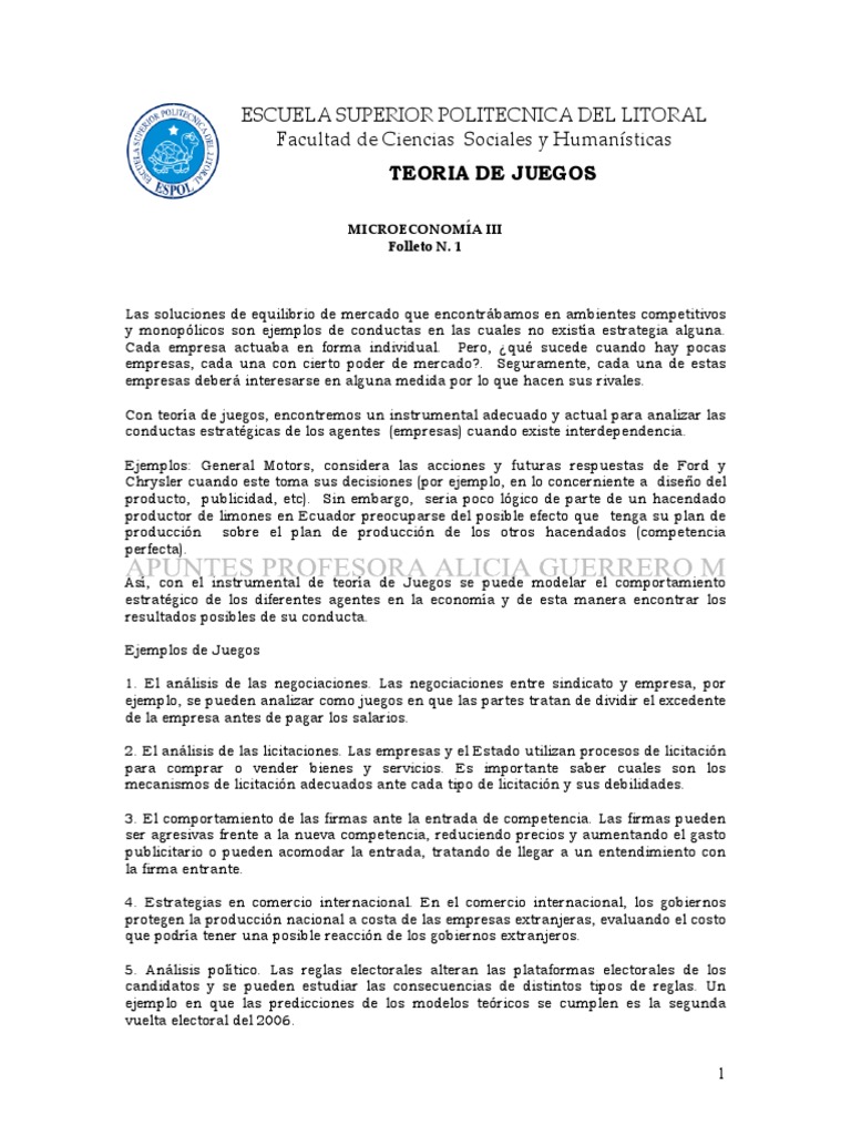 Teoría De Juego Juegos Estáticos Con Información Completa